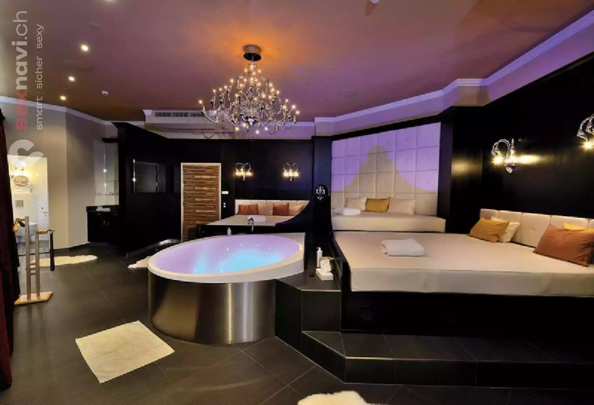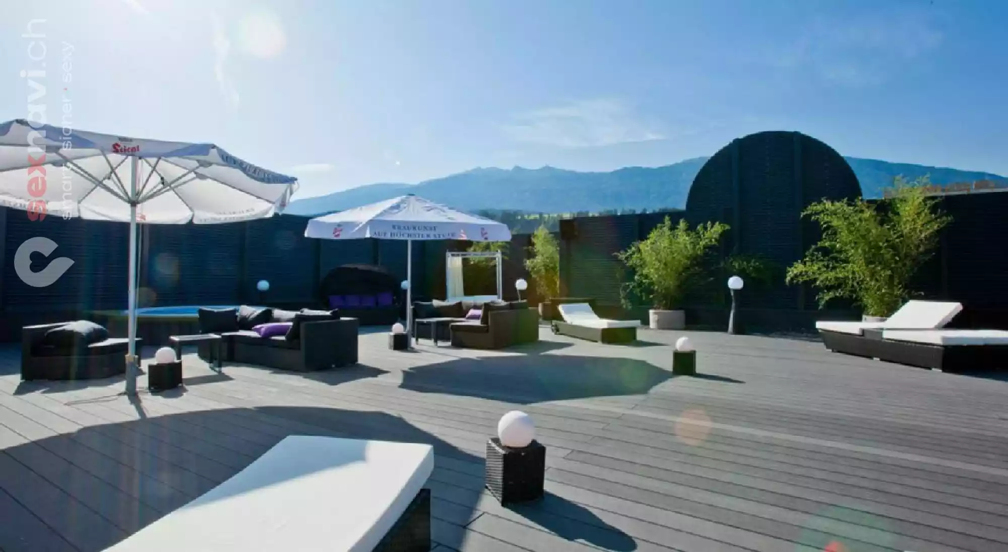 Bis zu 50 attraktive Damen verkürzen dir die Auszeit vom Alltag. Saunieren, relaxen, Whirpool, Sonnentrerrasse, sexy Girls, alkoholfreie Getränke und ein herzhaftes Buffet inklusive.