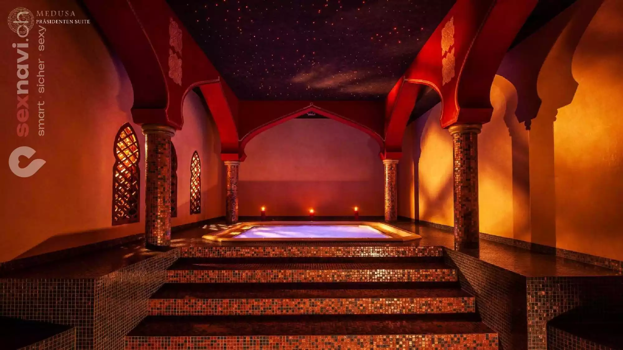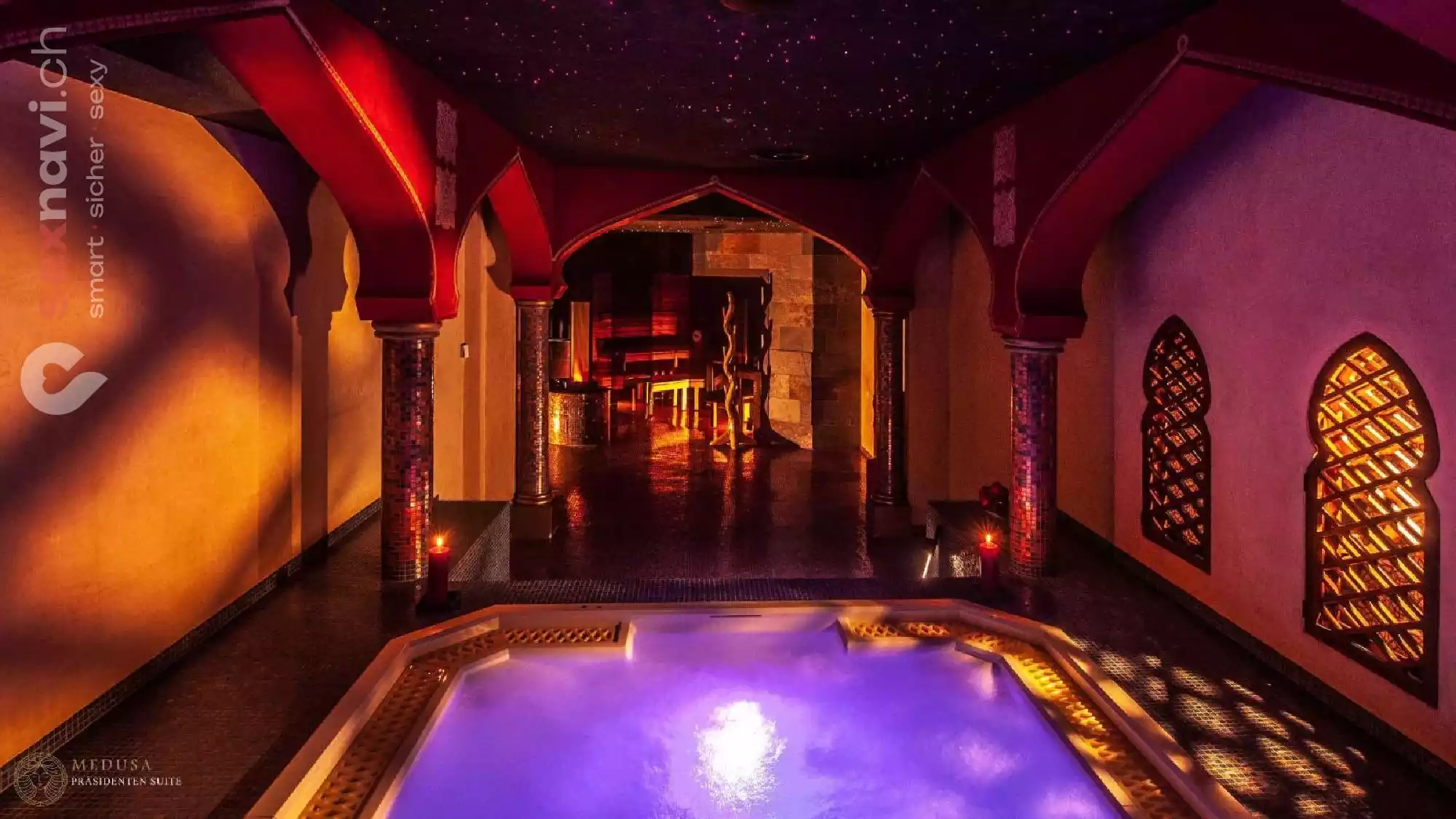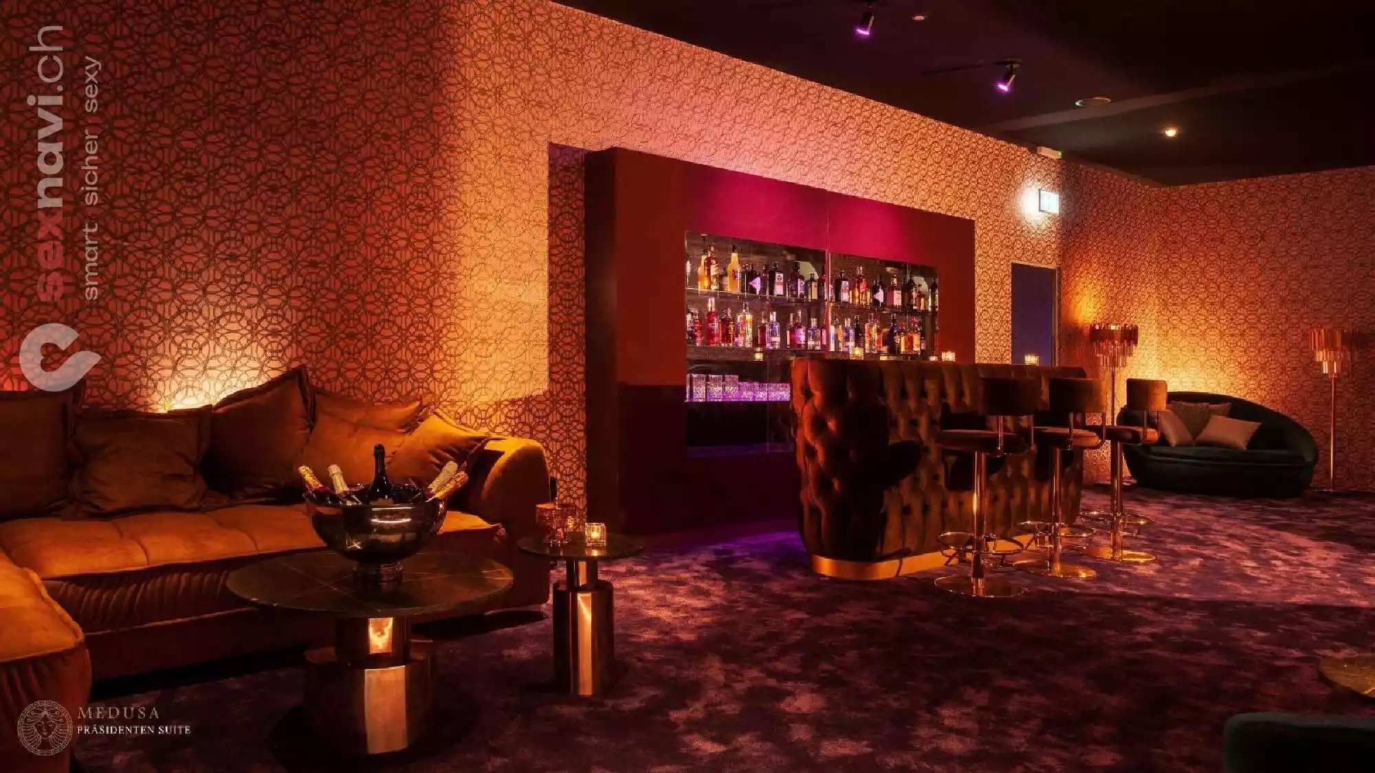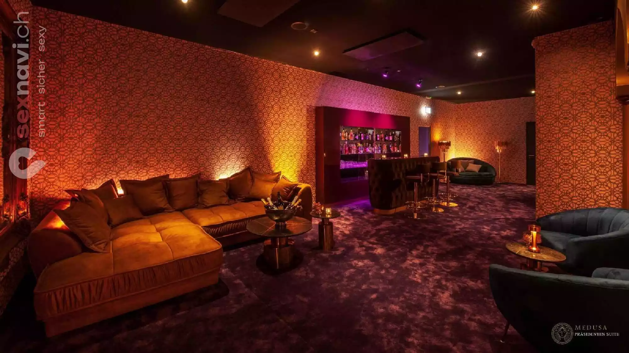 Die Ausstattung beweist sinnliches Flair bis ins Detail, vom Entrée über die Bar und der Lounge bis hin zu unseren diskreten Räumen.